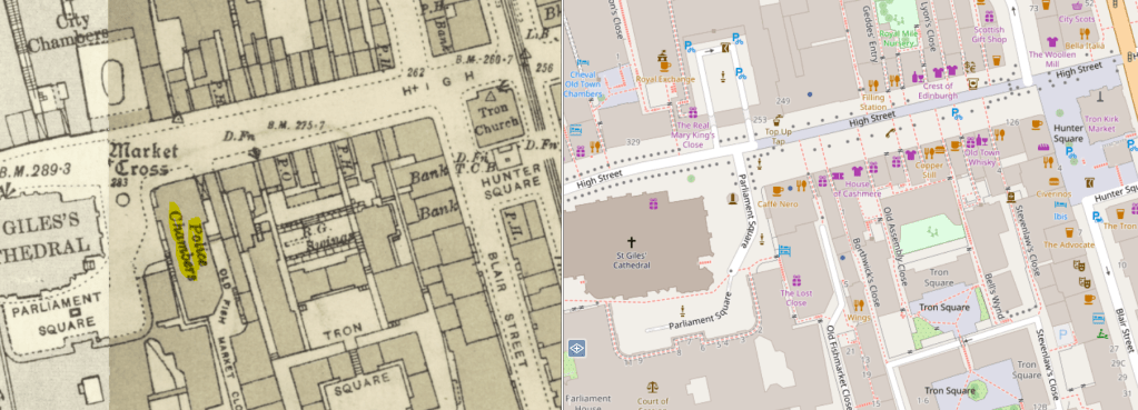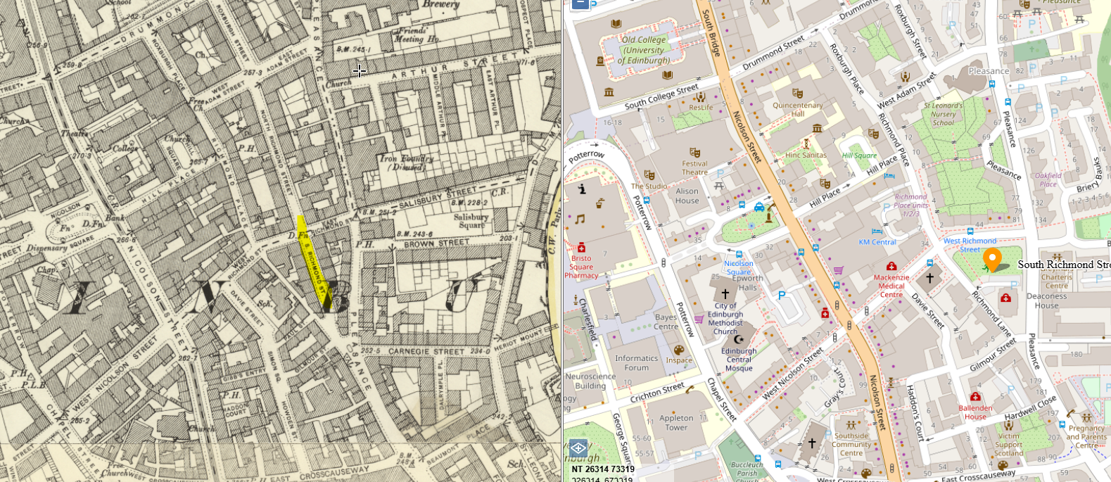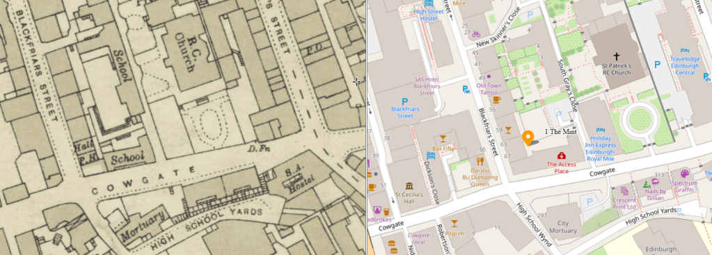 Edinburgh City Police Station is now a Cafe Nero Click here to get side by side map1 the Mint – in 1871 James McLevy lived here with his nieceClick here to get side by side mapIn 1873 James McLevy died here at 5 South Richmond Street (now demolished)