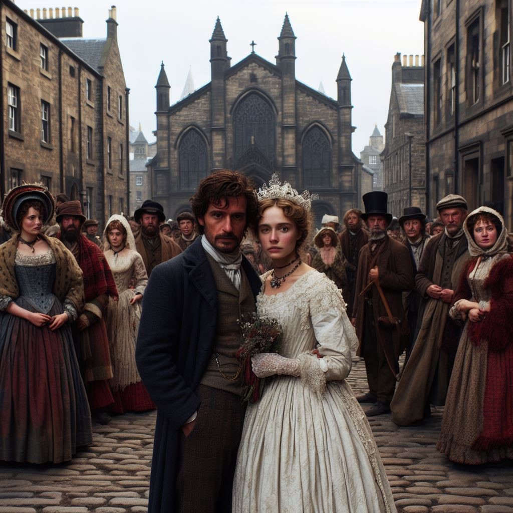 As Bailie’s Court, in the Cowgate, does not often respond to the strains of a marriage fiddle, there behoved to be a crowd, and it behoved that crowd to be witty at the expense of the happy pair; for when were not the poor, who form such crowds, envious? When I arrived, I found them all in that kind of uproar—hurraing at every newcomer—which characterises scenes of this nature; and my appearance quickened the humour into such bursts as “M‘Levy is to join them with handcuffs,” “Let up the priest,” “Where is your white cravat,” and the like—jokes which were really not happy, in so much as the nuptial knot had already been tied, and the sacred restraints of the guests were loosened to the extent of the freedom of dancing. On going upstairs, I found that all my suspicions of affront at not being invited were mocked by an open door for all comers, whence issued just such sounds of fiddle, feet, and fun, as one might expect. On my entry, there awaited me an honour which I believe would not have been awarded to the Lord Justice-Clerk; for my very appearance stopt the merrymakers when in full spring, just as if they were overawed by the appearance of a winged messenger. And no wonder, for I saw there many for whom I had procured lodgings, supplied with food, and even sent on an excursion to the sunny climes of the south; but no man has a right to enforce more gratitude than what is due to him, and I was vexed at throwing a cloud over so happy a scene.