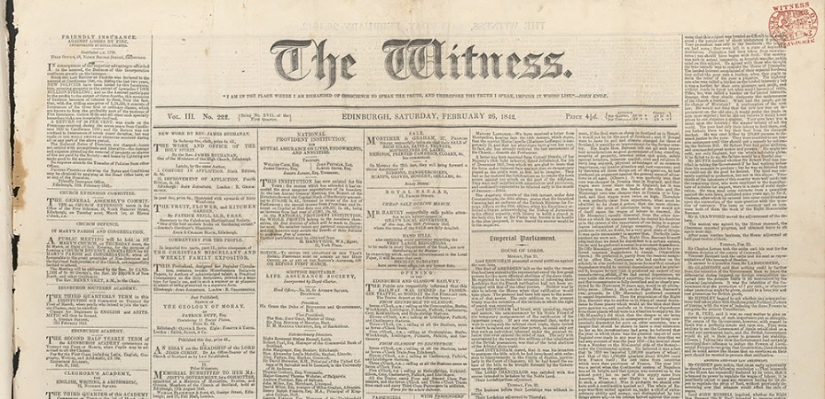 The Witness (1850) was a leading Edinburgh Presbyterian newspaper edited by Hugh Miller, strongly Free Church in tone, known for its social reform reporting, religious debate, and influential commentary on the moral life of Victorian Scotland.