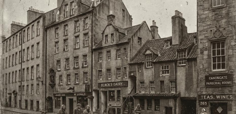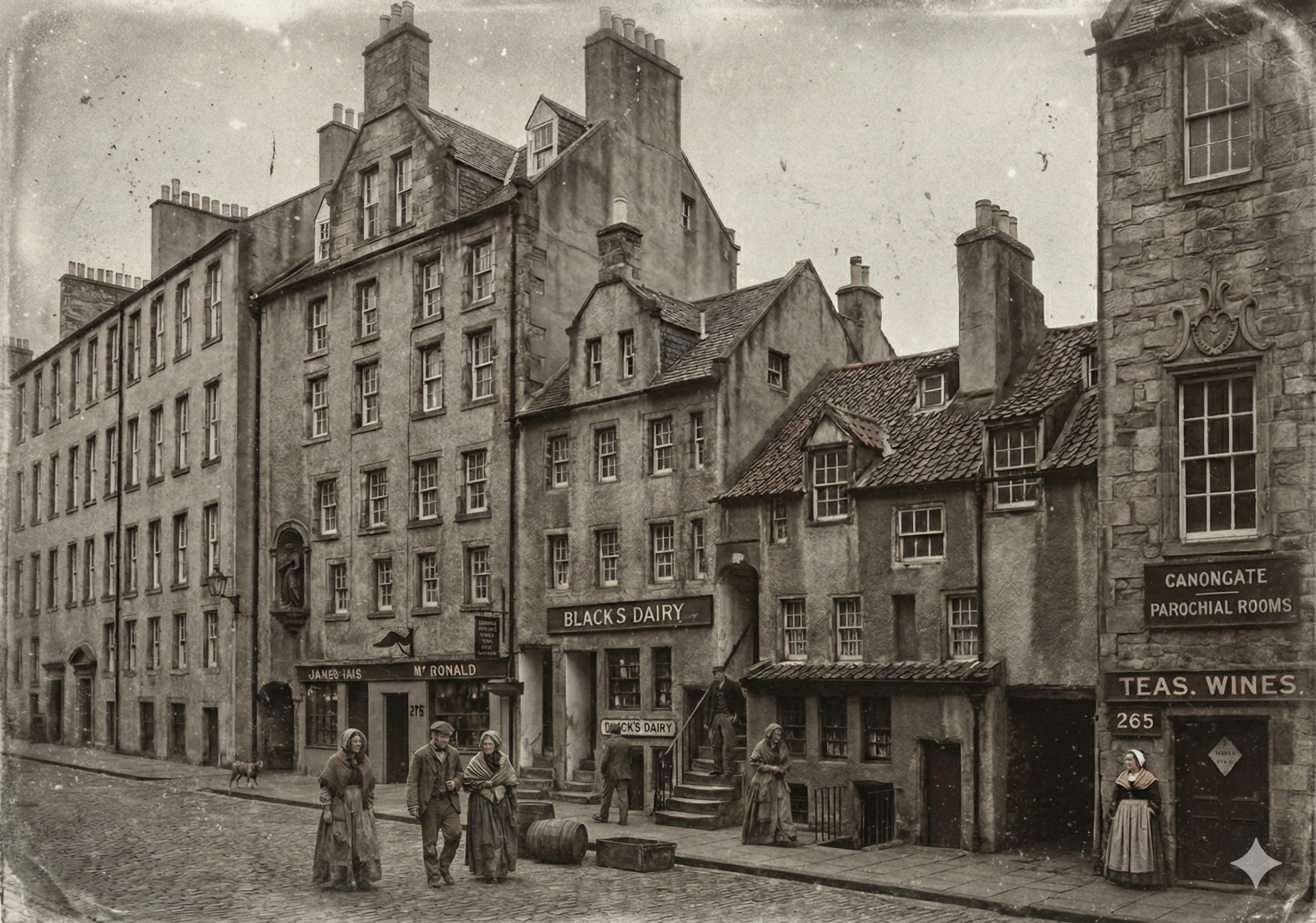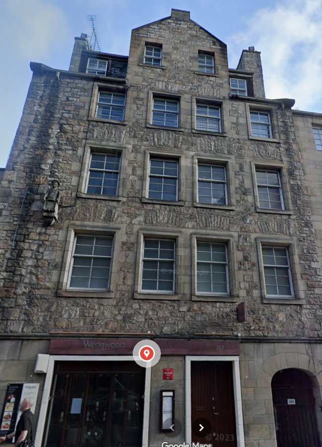 The building standing today at 265 Canongate is actually a 1950s reconstruction (by architect Robert Hurd) that replicated the original style, but they carefully preserved and re-installed the original Moor’s Head statue, which you can still see there today.